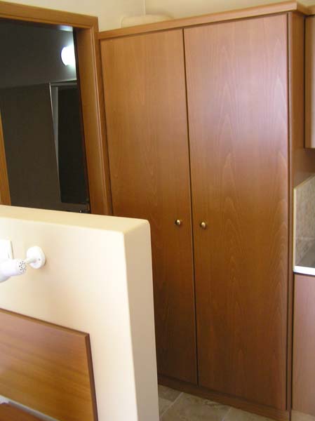 The kitchenette has an electric burner, a toaster, an electric kettle, a large refrigerator and all necessary kitchen utensils.