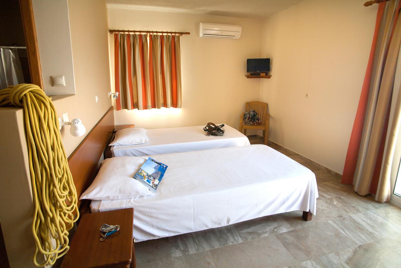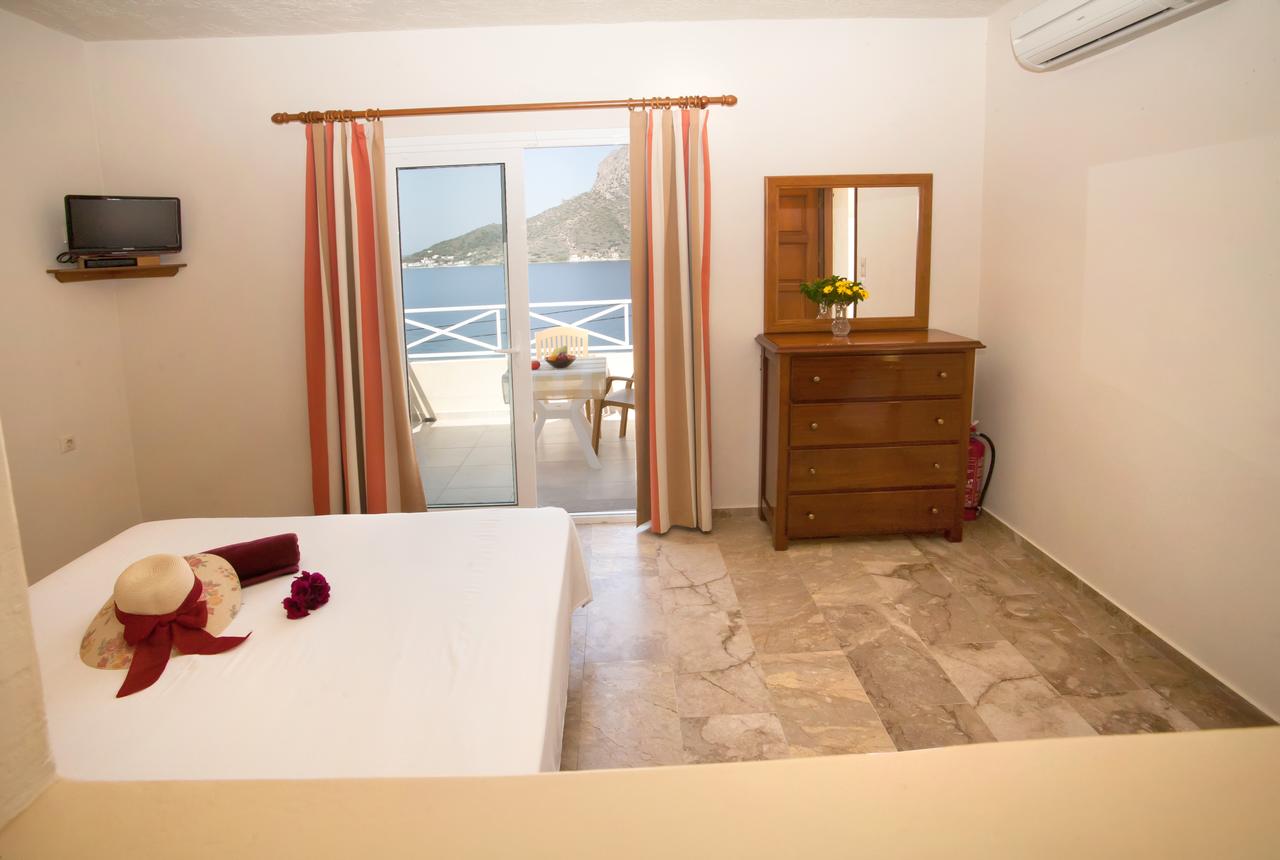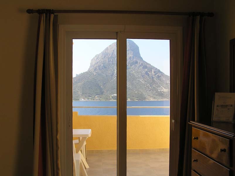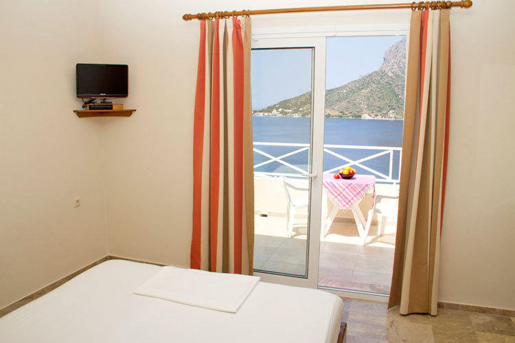 All rooms have two beds, are fully equipped and have a balcony with a sea view overlooking Telendos Island.